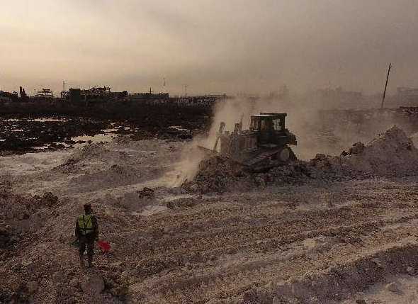 河北宣工高驅(qū)動(dòng)推土機(jī)在江蘇響水“3·21”特大爆炸事故核心區(qū)爆炸坑搶險(xiǎn)救援活動(dòng)中再建新功
